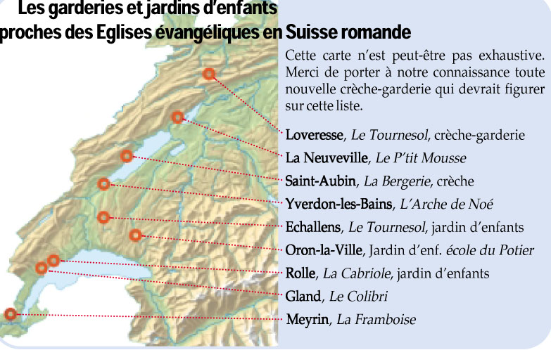 A 30 kilomètres de là, la garderie Le Colibri a ouvert ses portes il y a 17 ans dans les locaux de l’Eglise évangélique Arc-en-Ciel de Gland. « Ce projet a été intégré à l’époque dans la construction de nos nouveaux bâtiments », précise le président de la garderie Daniel Balmer. Une centaine d’enfants y viennent chaque semaine pour une capacité d’accueil de 34 places à plein temps. La garderie fait également partie des réseaux de la FAJE et bénéficie de subventions communales pratiquement depuis l’ouverture. « La tendance qu’on observe, c’est que de plus en plus de parents souhaitent placer leurs enfants toute la journée et, si possible, toute la semaine. Il y a cinq ans, ce n’était pas aussi prononcé. » Et le pasteur Norbert Valley de souligner que l’Eglise doit s’adapter et répondre aux besoins de son époque. « Il ne s’agit en l’occurrence pas tant d’occuper le terrain que d’être au service des autres, comme le sel de la terre l’est au service des aliments. ²La véritable Eglise est celle qui l’est pour ceux qui n’en sont pas², disait le pasteur et théologien allemand Dietrich Bonhoeffer. Comme lui, je pense que le sens de l’Eglise, c’est d’être ouvert ; sinon, on devient un club, un lieu fermé où se rencontrent les mêmes gens, où l’eau ne se régénère pas et devient impropre à la consommation. »